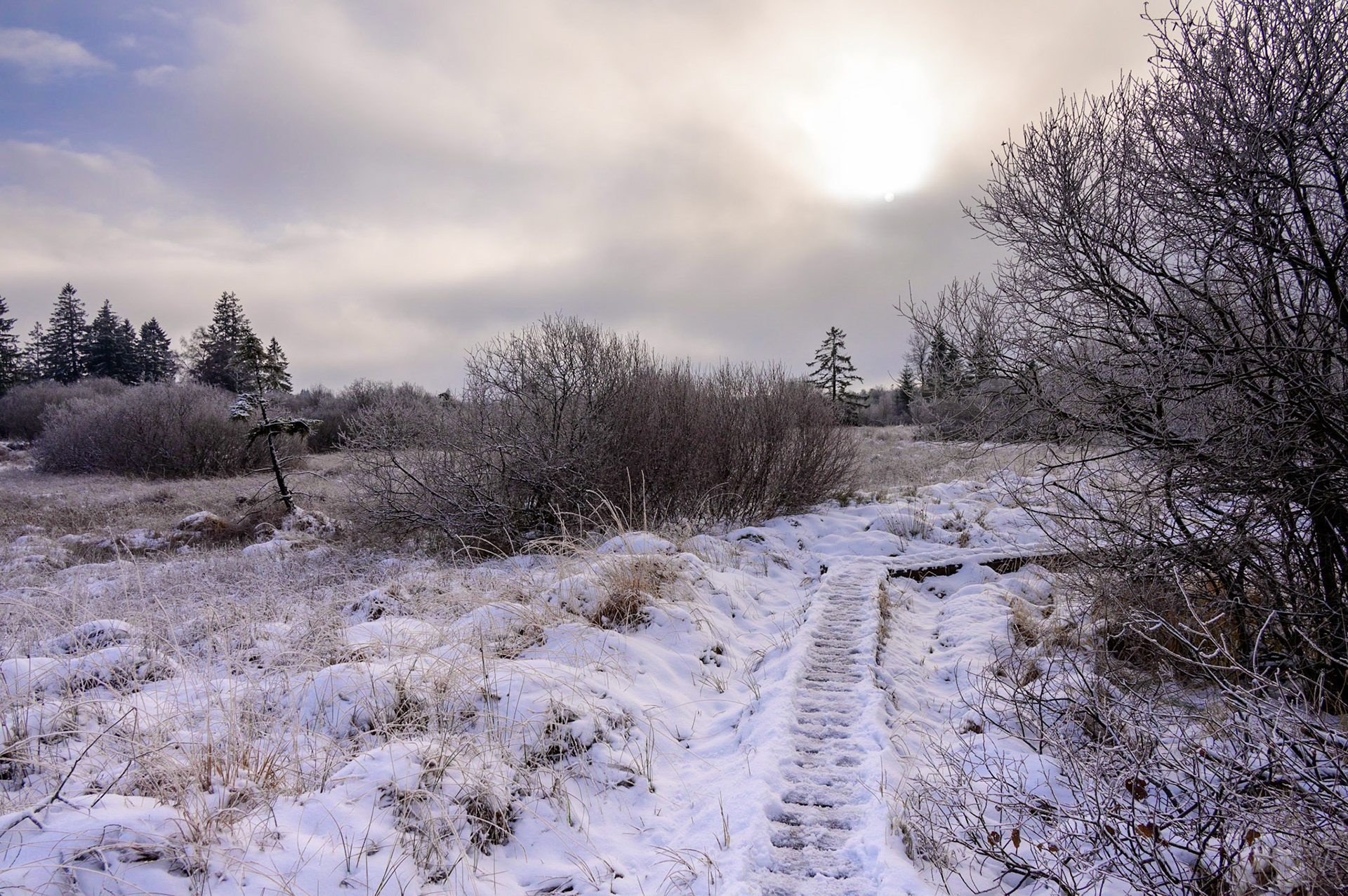 Das hohe Venn ist ein Hochmoor in rund 620 m Höhe und liegt nahe der Grenze zwischen Deutschland und Belgien. Diese Aufnahmen entstanden in der Nähe des Parkplatzes Nahtsief in östlicher Richtung bei laufend ändernden Wetter- und Lichtverhältnissen.